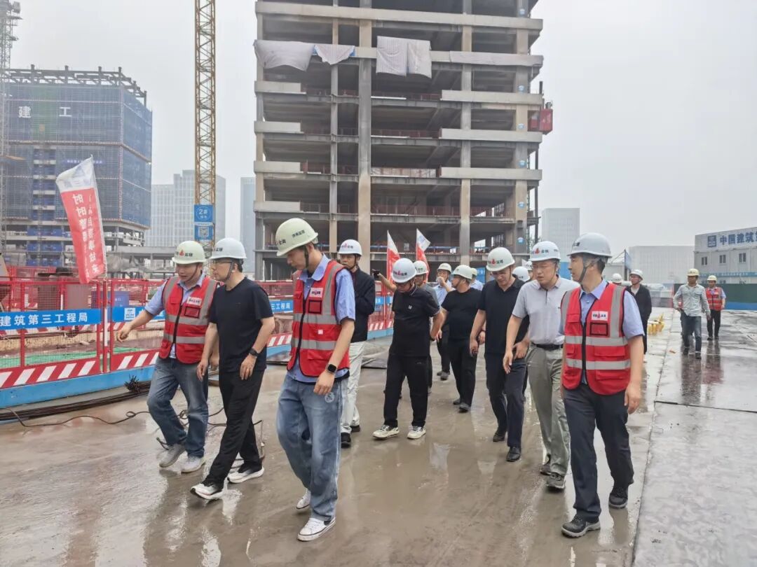 隨后,在總監(jiān)的帶領下,全體人員觀摩了項目現(xiàn)場。由總監(jiān)、各位監(jiān)理工程師向大家講解該項目鋼結構施工過程和控制要點,大家針對本項目的鋼結構柱芯混凝土頂升法澆筑施工工藝展開熱烈的討論。